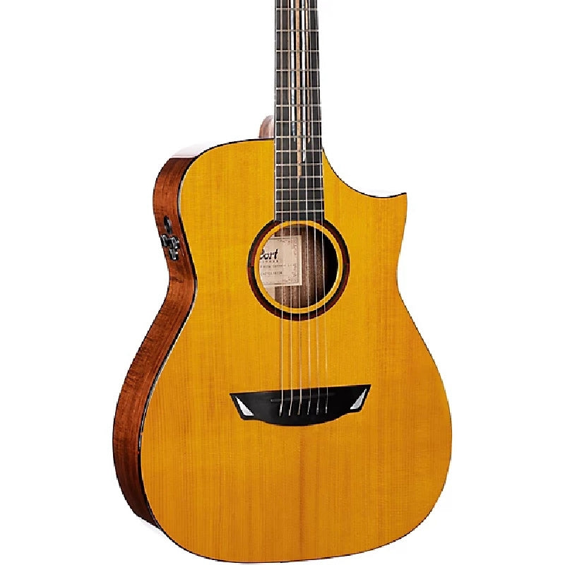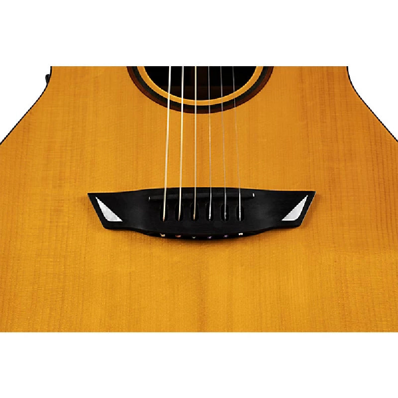 The top is made from torrefied solid Sitka spruce, utilizing Cort's Aged to Vintage (ATV) treatment to replicate the rich tonal qualities of a vintage guitar. This enhances resonance, projection, and tonal maturity from the first strum.